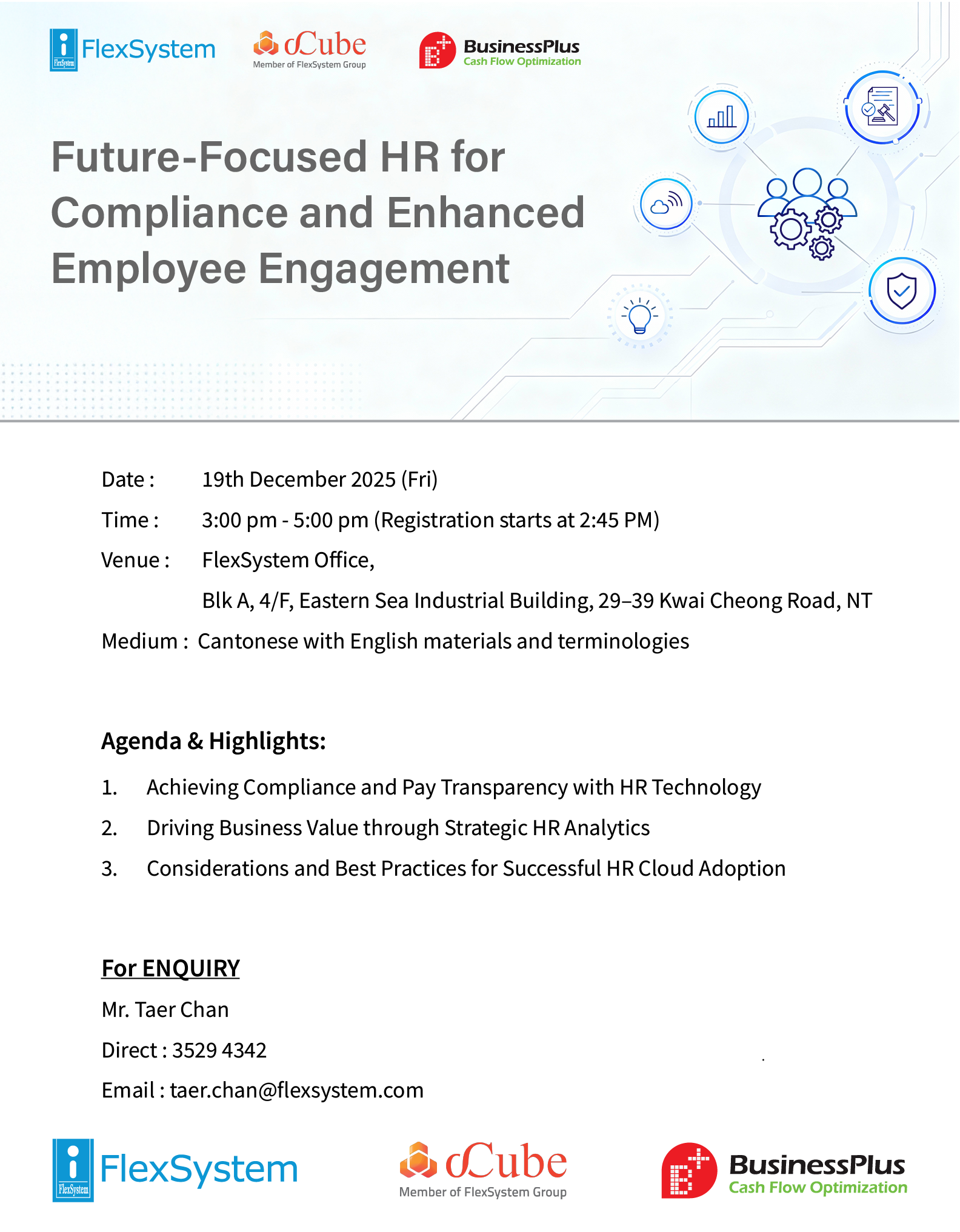 - 介紹如何透過 HRMS 識別及滿足不同的勞工法例要求,例如「 418」條例、「468」條例、「713」條例及計算「尾糧」等