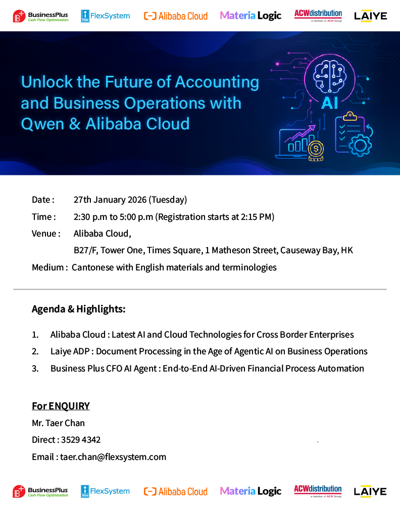 - FlexSystem 最新 AI 技術和 BusinessPlus CFO - AI 自動化解決方案的介紹及現場系統演示